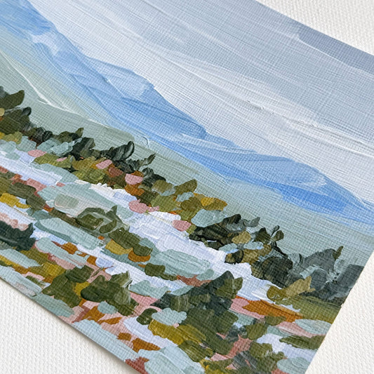 Explore my full collection of original acrylic artwork. From tiny paintings on fine art paper to large statement pieces on stretched canvas, each one invites you into a colorful mountain landscape, field dotted with wildflowers, or expansive vista. Created for collectors, mountain lovers, or anyone wanting to bring a piece of nature into their home, these original paintings capture how wild and wonderful our world is—and I hope they bring you joy.