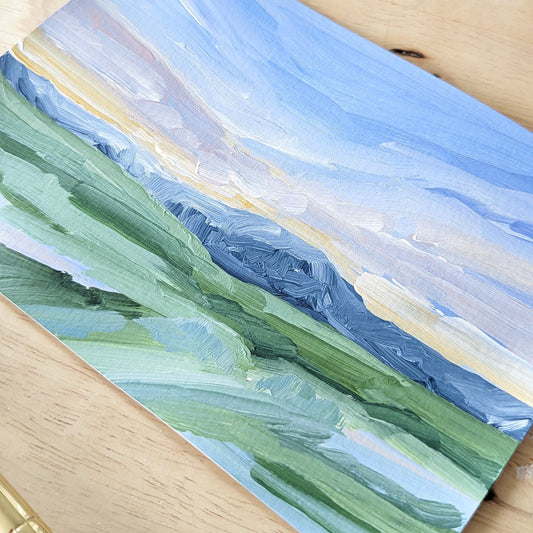 Explore my full collection of original acrylic artwork. From tiny paintings on fine art paper to large statement pieces on stretched canvas, each one invites you into a colorful mountain landscape, field dotted with wildflowers, or expansive vista. Created for collectors, mountain lovers, or anyone wanting to bring a piece of nature into their home, these original paintings capture how wild and wonderful our world is—and I hope they bring you joy.