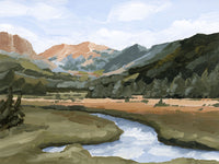 Dieser ungerahmte Leinwanddruck „Grand Lake“ (40 x 50 cm) ist eine Reproduktion eines originalen Acrylgemäldes, inspiriert von der vielfältigen und farbenprächtigen Landschaft des Grand Lake in Colorado. Mit schwungvollen Pinselstrichen und leuchtenden Farben fängt dieses Bergmotiv die Essenz der ikonischen Rocky-Mountain-Landschaft ein. Der abstrakte Landschaftsdruck besticht durch seinen minimalistischen Stil und ist ideal, um die Schönheit Colorados in Ihr Zuhause zu bringen.