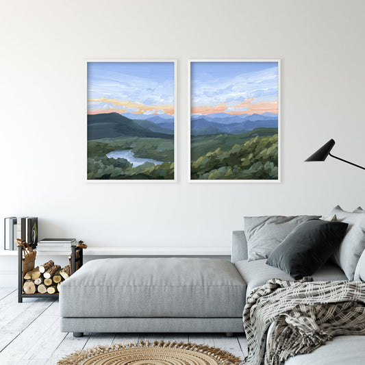 "Peaks and Valleys I" Diptych Art Print || Set of 2