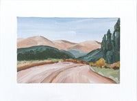 This original acrylic landscape painting on 5x7 paper was inspired by the varied and colorful landscape of Winter Park, Colorado in autumn. This original landscape painting depicts the beautiful fall colors of the Rocky Mountain landscape in an impressionist style.
