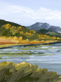Transform your space with this diptych wall art, featuring two landscape art prints inspired by the diverse and colorful scenery near Vail, Colorado in autumn. With playful brushstrokes and vibrant colors, this mountain wall art captures the essence of Eagle County's private, forty-acre Rocky Mountain retreat, known as a favorite wedding destination. Available in a variety of art print sizes, this mountain art print set showcases a minimalist, impressionist style and is perfect for bringing the beauty of Colorado into your home.